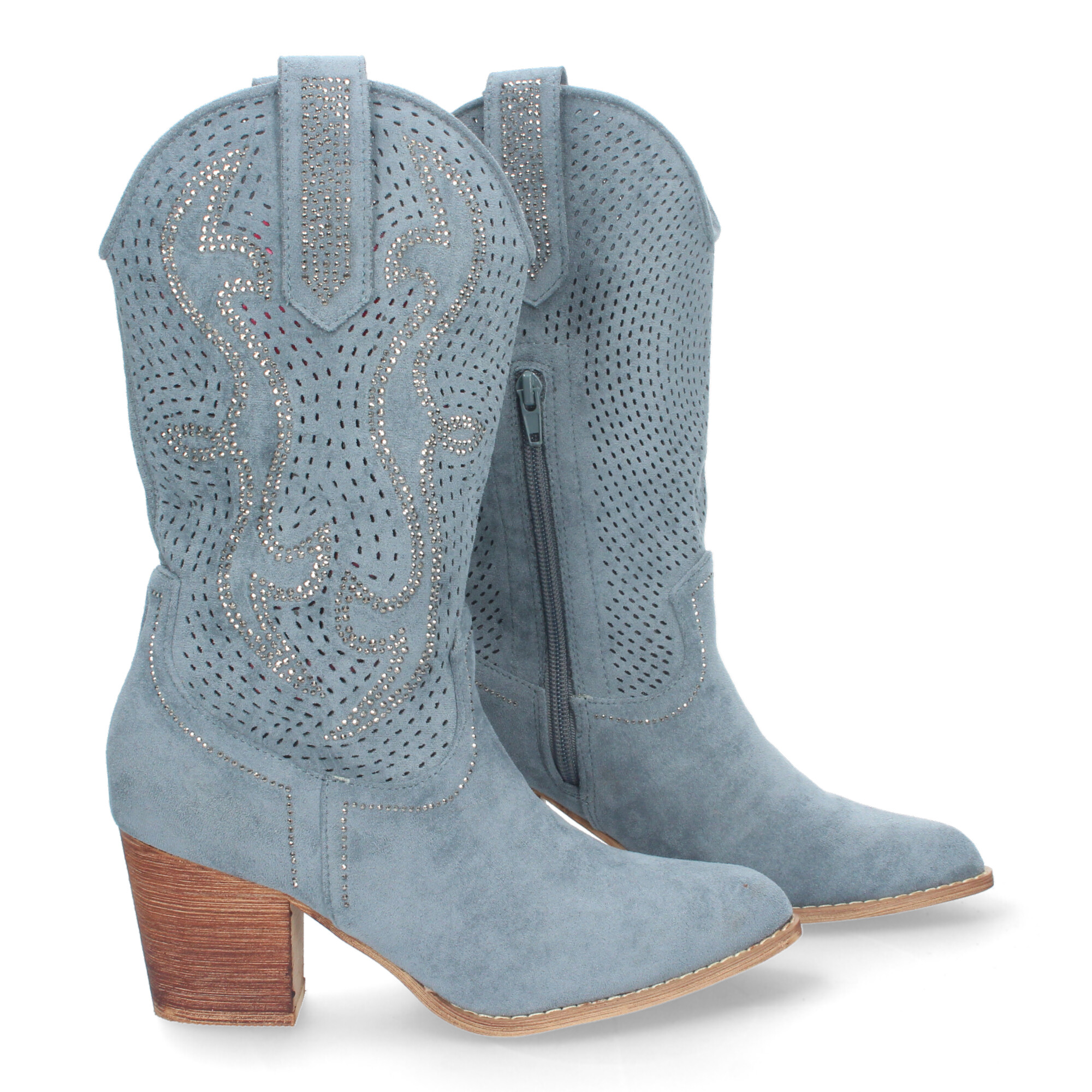 Bota Campera de Mujer con Tacón Cómodo Caladas en la caña Puntera Fina y Cierre de Cremallera.