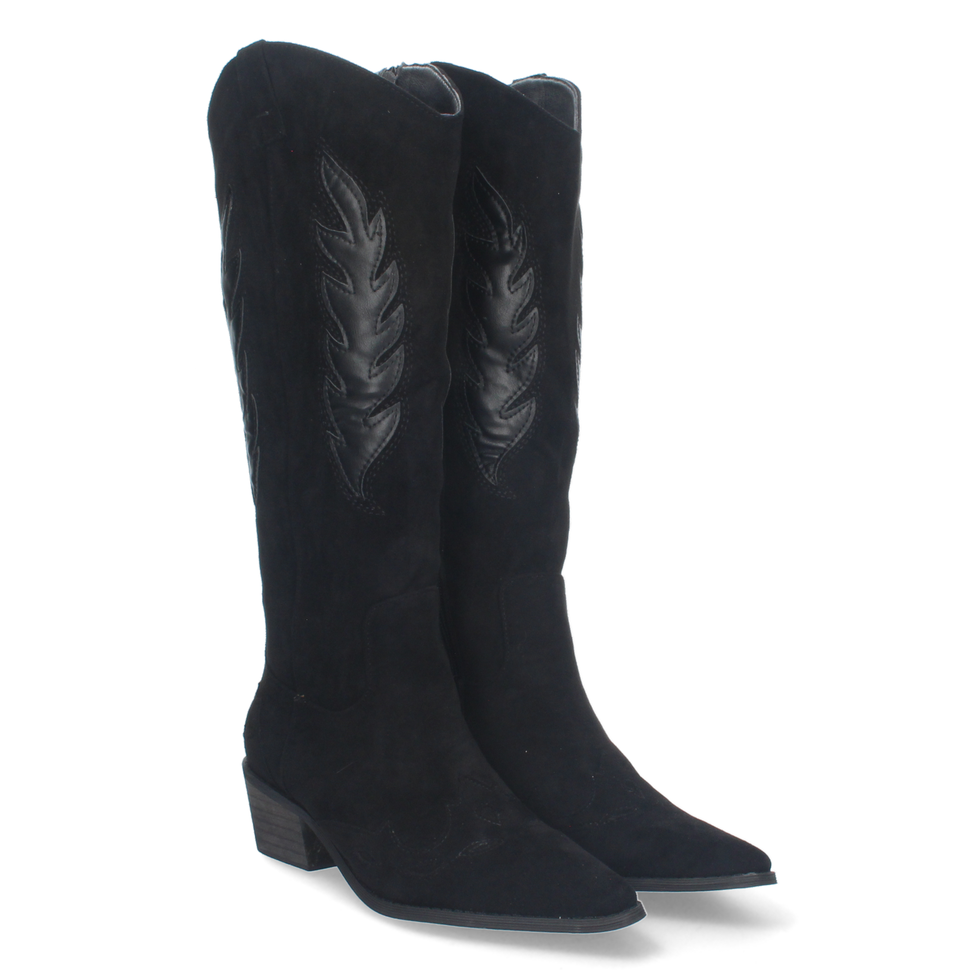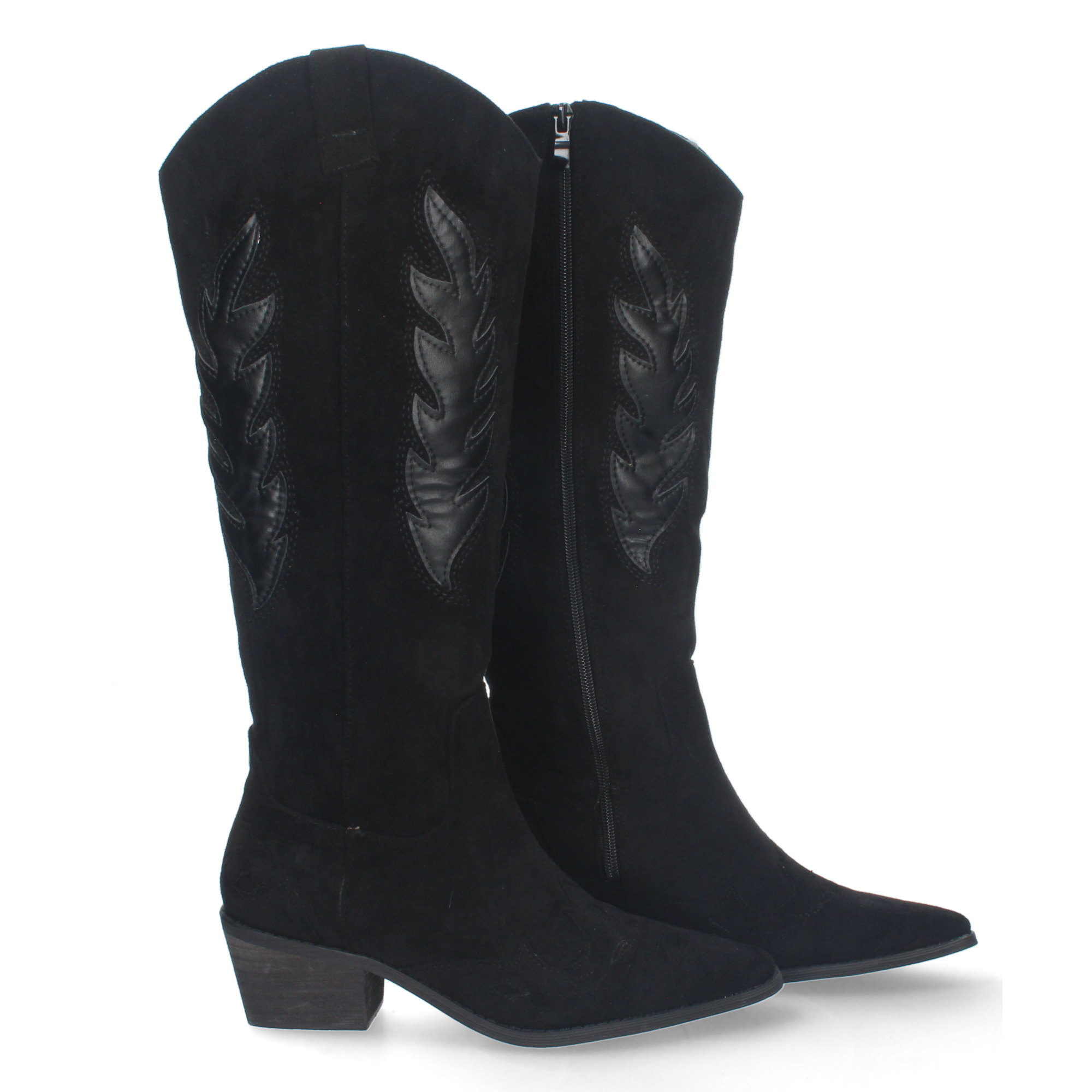 Bota de tacon para mujer comodas de material aterciopelado con estampado en la caña y en la pala y cierre de cremallera.