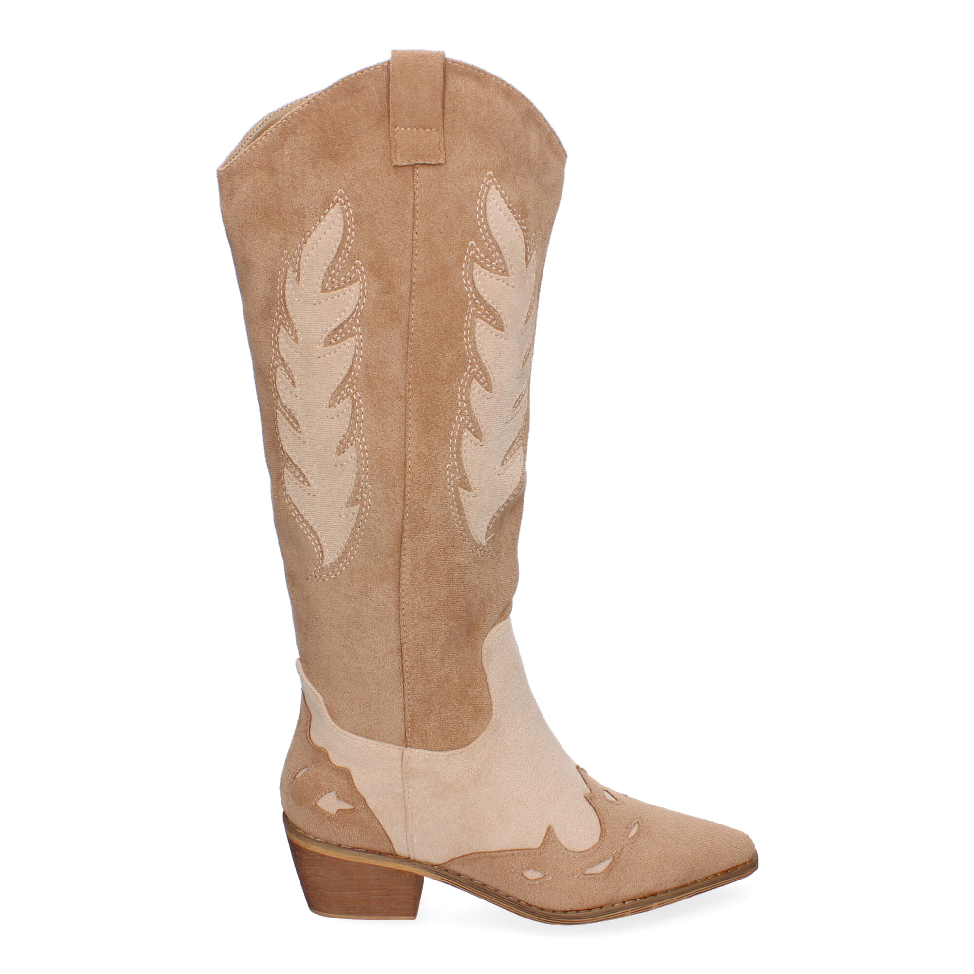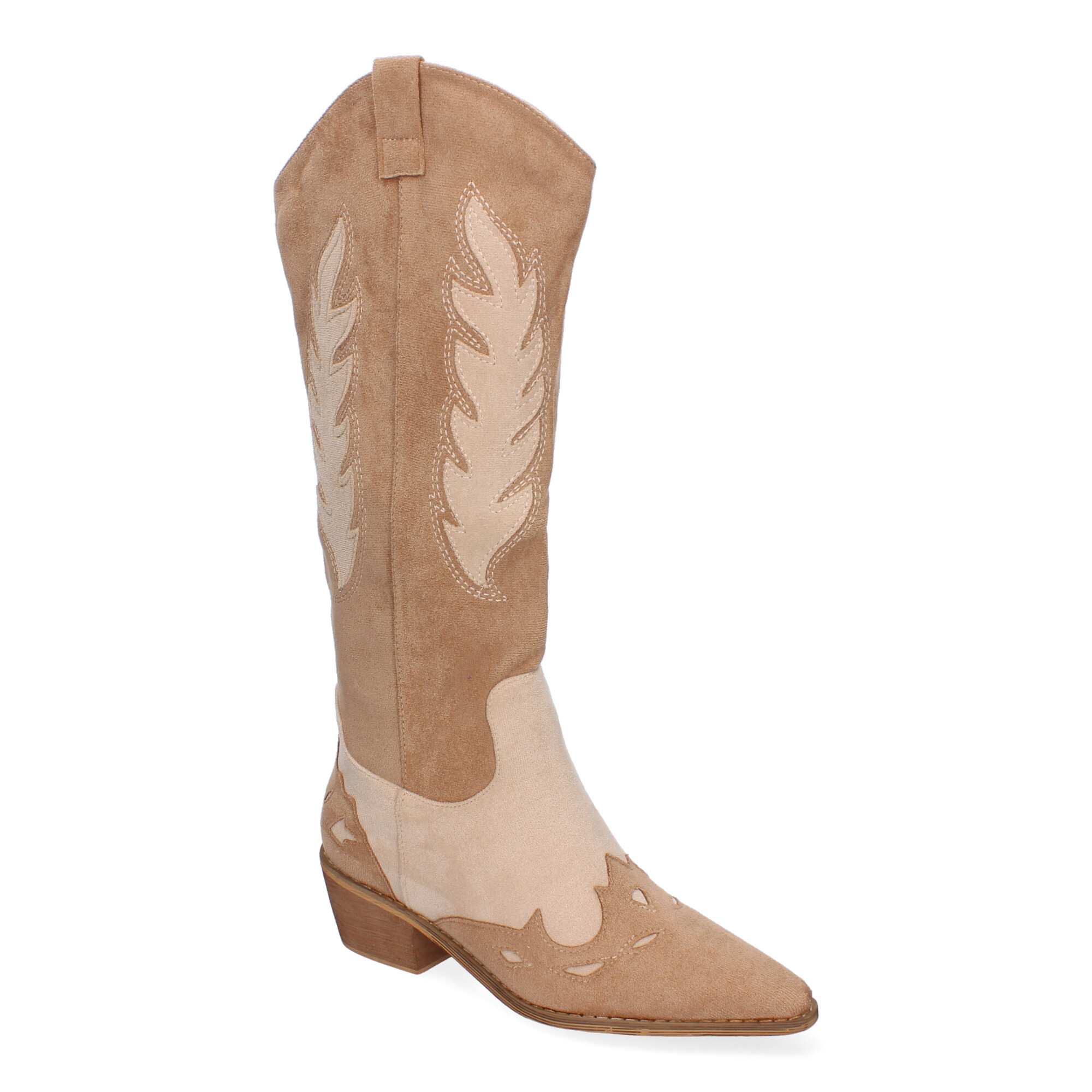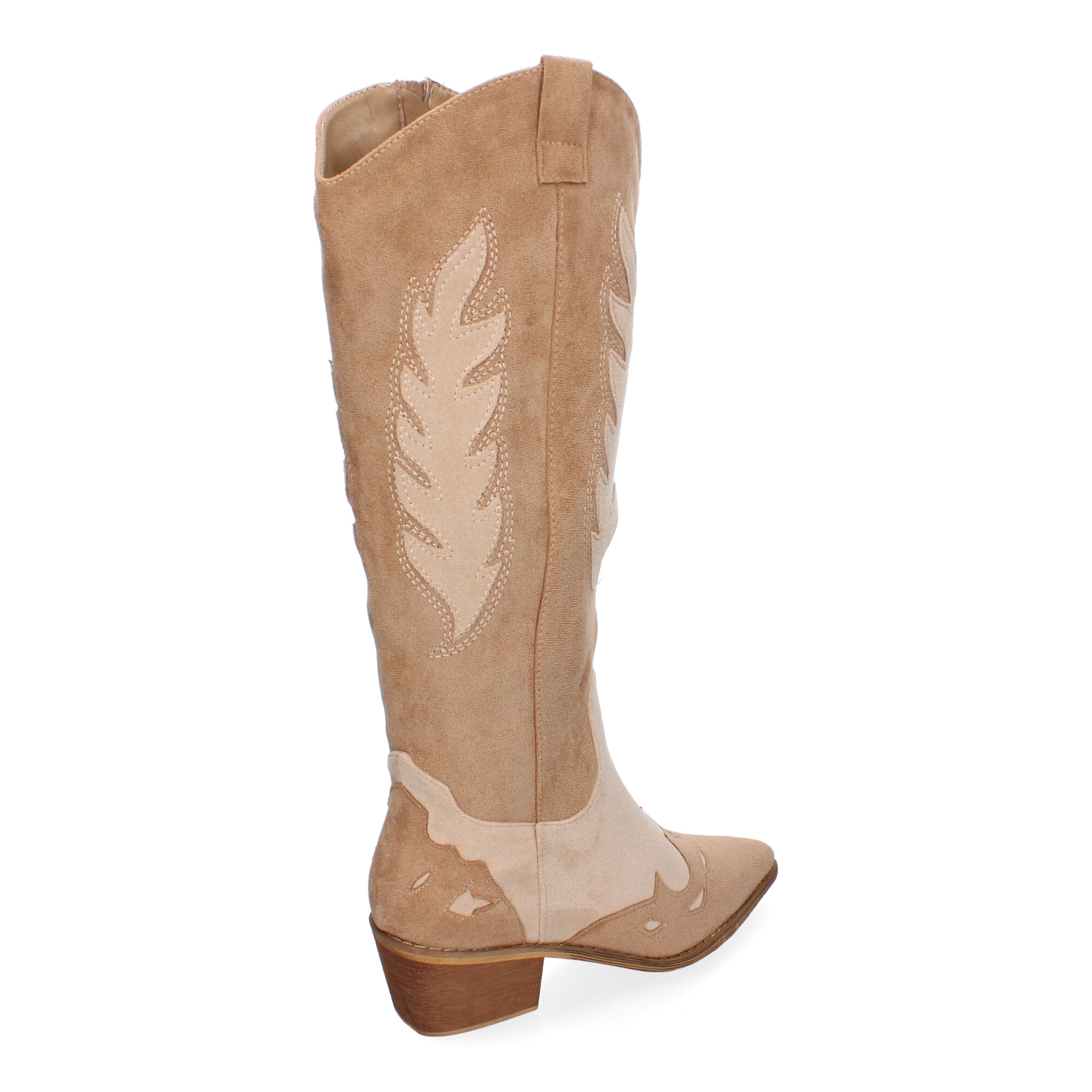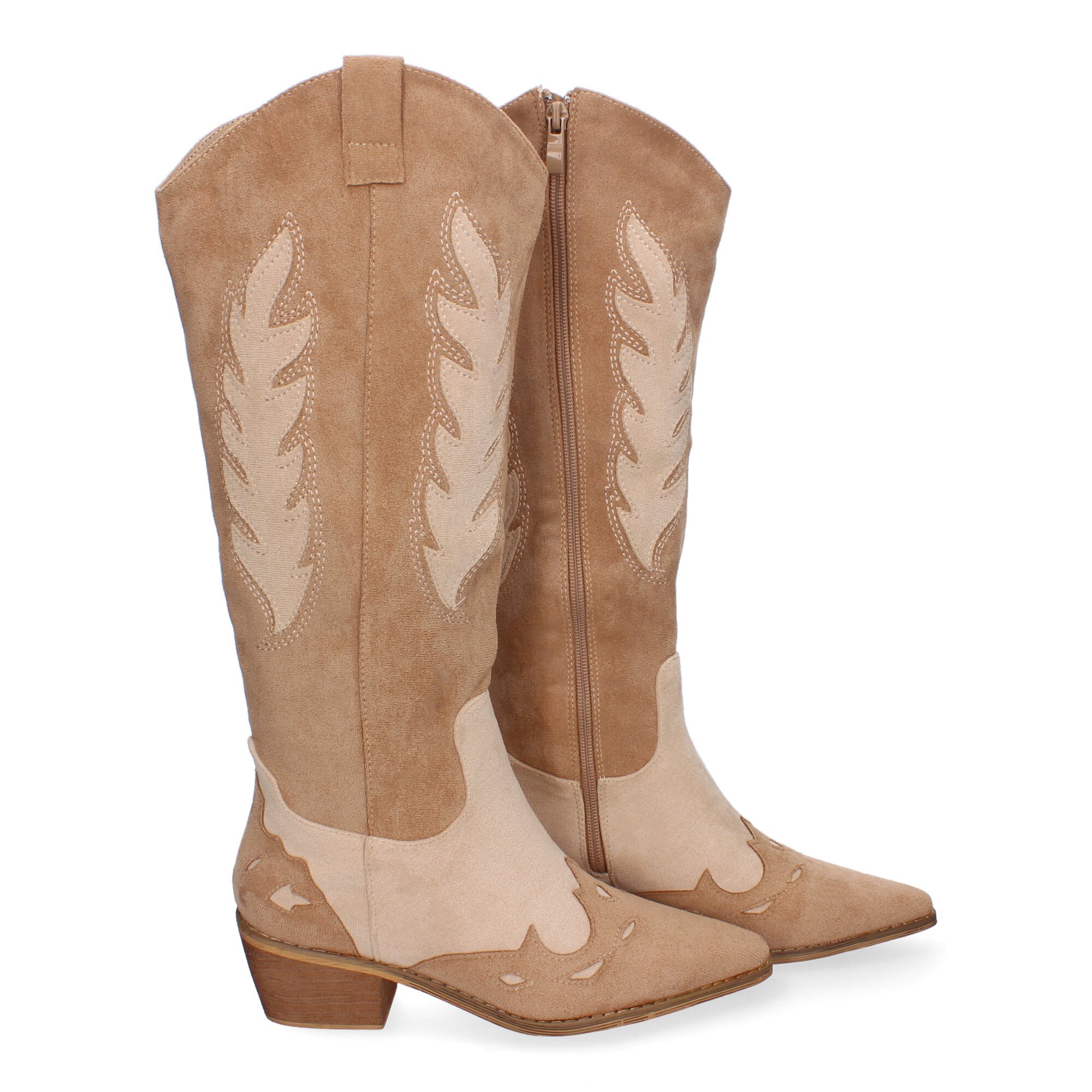 Bota de tacon para mujer comodas de material aterciopelado con estampado en la caña y en la pala y cierre de cremallera.