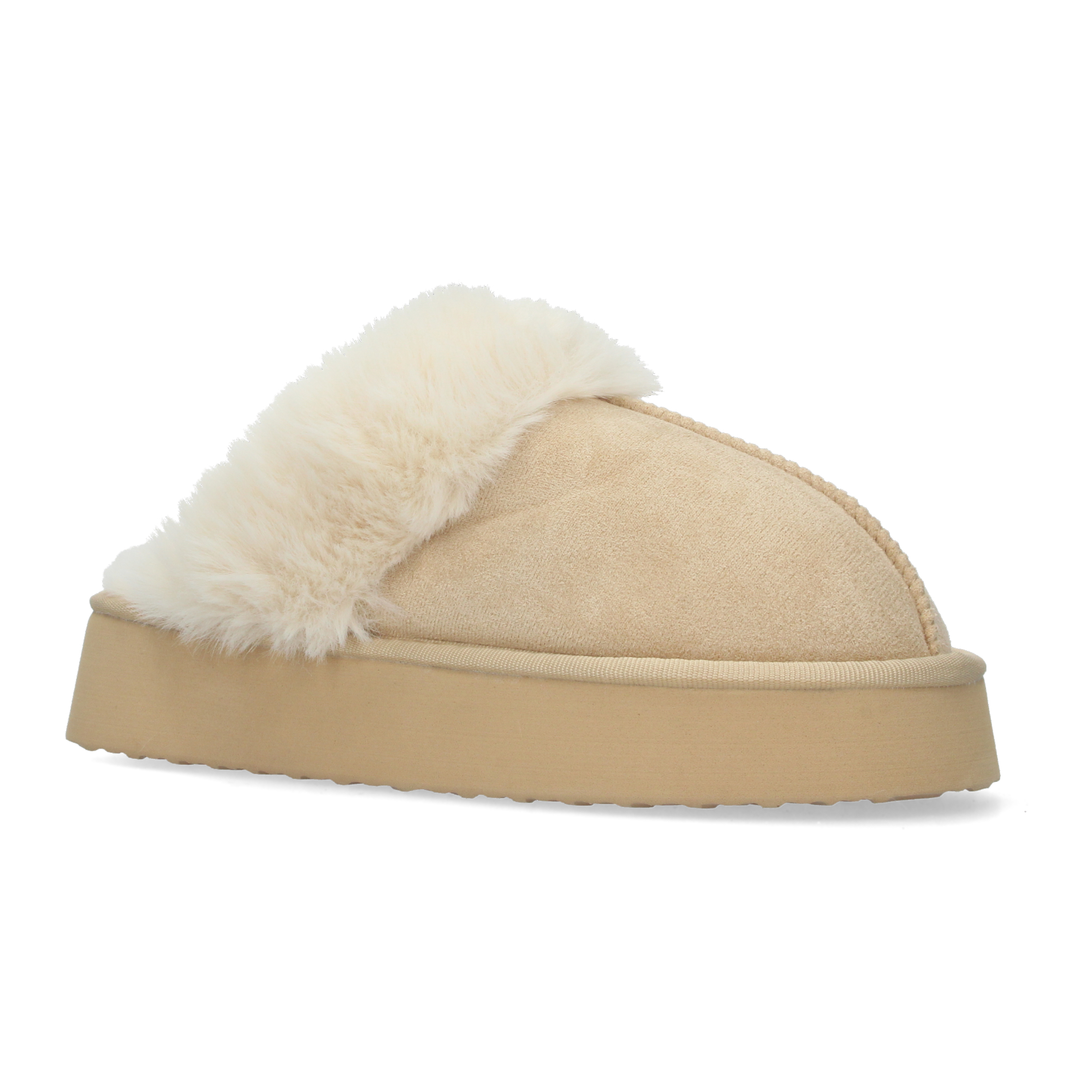 Zapatilla de casa estilo australiano calidas forradas de pelo de plataforma y puntera rendonda.